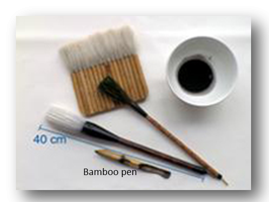 50 x 65 x 2 cm in a frame with glass. Japanese ink wash painging Sumi-e on Chinese paper streched on cotten paper.